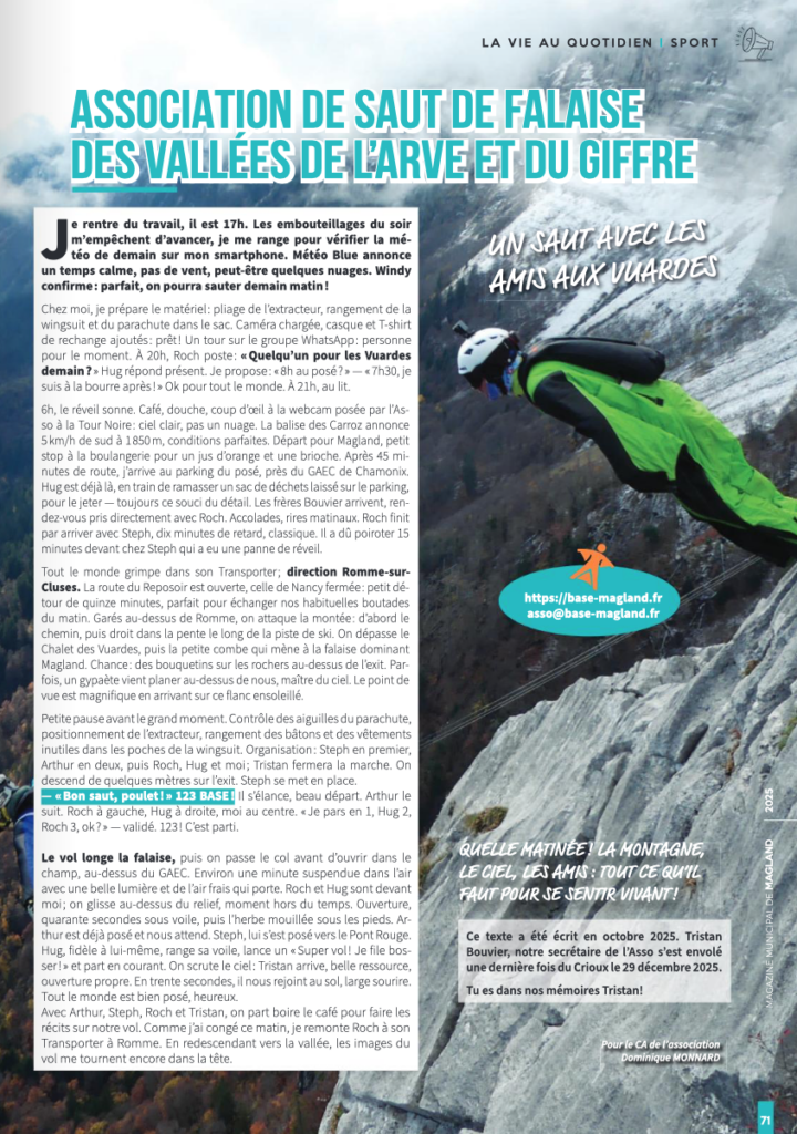 Interdiction de saut sur la commune de Magland le Vendredi 13 Juin. Merci de respecter cet avis prononcer par la Mairie de Magland.