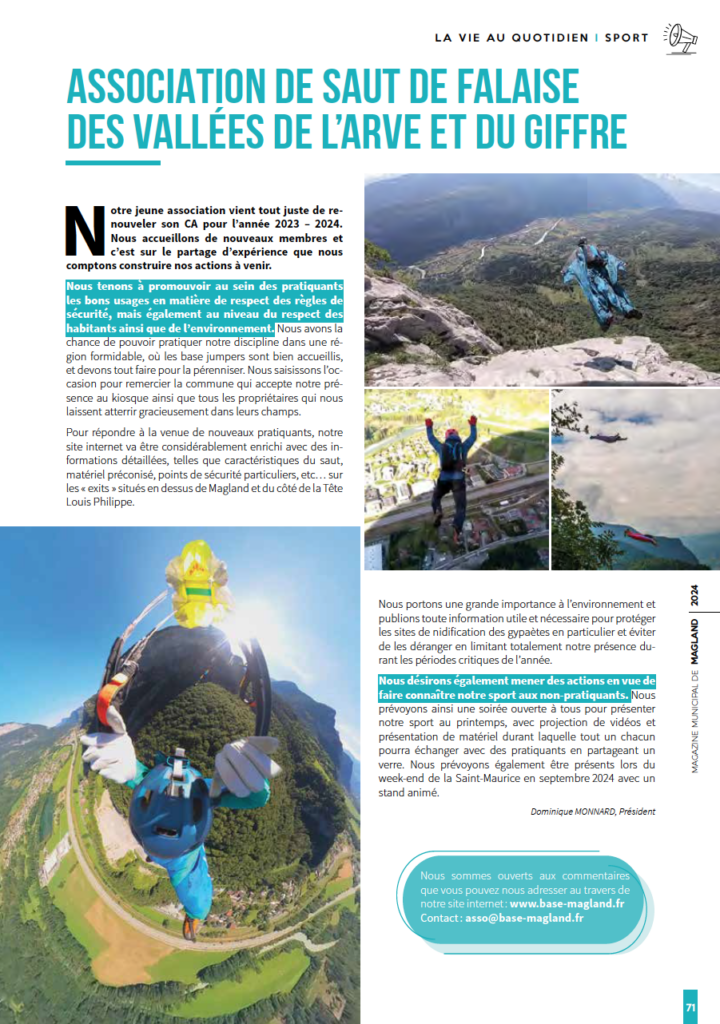 Dans le bulletin municipal de Magland, qui est maintenant disponible en PDF