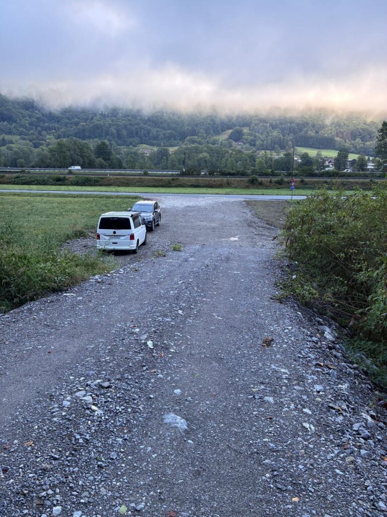 La mairie de Magland a aménagé deux places de stationnement en bordure du chemin d’accès à la voie forestière au posé de la TLP/Belvé.